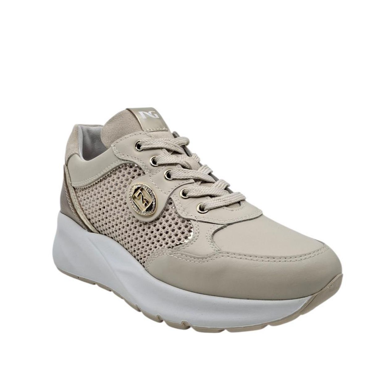 De Nero Giardini E615180D710 Velvet Milk is een dames sneaker die Italiaanse elegantie moeiteloos combineert met hedendaags comfort. De zachte “milk”-kleur geeft deze sneaker een verfijnde, lichte uitstraling die perfect past bij zowel casual als meer geklede outfits. Deze sneaker is uitgevoerd in hoogwaardige materialen met een fluweelzachte afwerking, wat zorgt voor een luxueus gevoel en een elegante look. De strakke lijnen en verzorgde details maken dit model typisch voor Nero Giardini: modieus, vrouwelijk en kwaliteitsvol afgewerkt. Dankzij de comfortabele zool en goede pasvorm stap je vlot door je dag, zonder in te boeten op stijl. Ideaal voor wie een sneaker zoekt die net iets chiquer oogt, maar toch heerlijk draagbaar blijft. Een perfecte keuze onder een jeans, een lichte broek of zelfs een jurk. Kenmerken: – Damesmodel – Hoogwaardige materialen met fluweelzachte afwerking – Elegante, lichte kleur “Velvet Milk” – Comfortabele zool – Vetersluiting – Normale pasvorm – Italiaanse stijl en afwerking – Ideaal voor dagelijks gebruik met een elegante touch