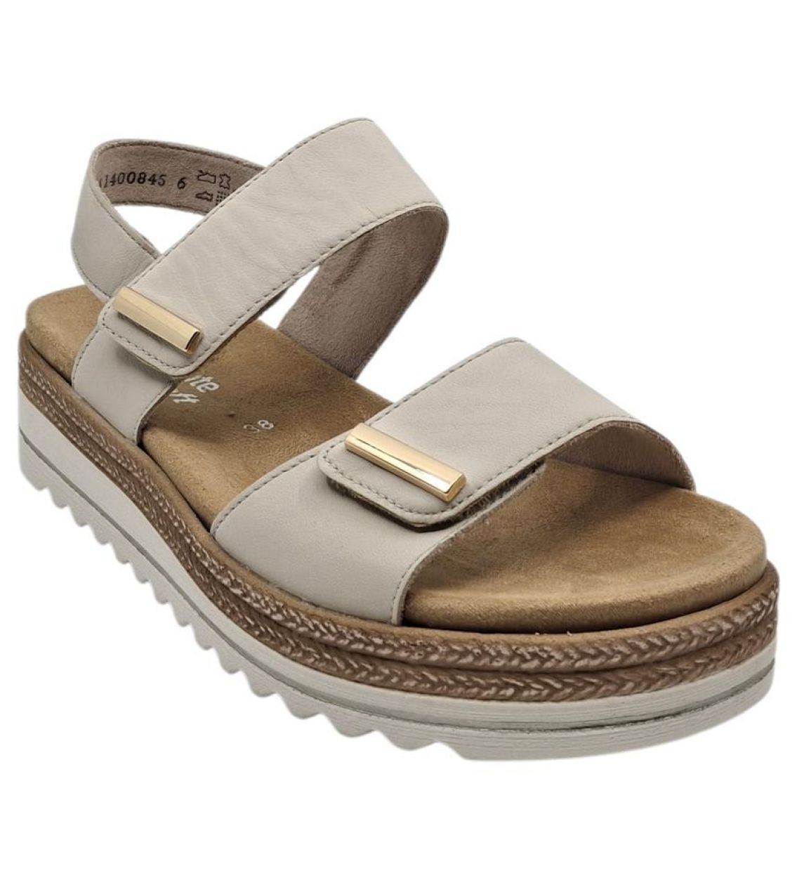 De Remonte D0Q59-61 in beige is een comfortabele en elegante sandaal met een tijdloze uitstraling. De zachte beigetint maakt dit model bijzonder makkelijk combineerbaar met zomerse en dagelijkse outfits. Het soepele bovenwerk voelt aangenaam aan en vormt zich mooi naar de voet. Dankzij de verstelbare bandjes kan de sandaal perfect aangepast worden voor een stabiele en persoonlijke pasvorm. De zachte binnenzool met demping zorgt voor extra comfort tijdens het stappen. In combinatie met de lichte en flexibele zool biedt deze sandaal een aangenaam loopgevoel, ook bij langere dagen. Een ideale keuze voor wie comfort, gebruiksgemak en een verzorgde look wil combineren. Kenmerken Soepel en comfortabel bovenwerk Verstelbare bandjes Zachte dempende binnenzool Lichte en flexibele zool Goede pasvorm Makkelijk aan en uit Tijdloos en zomers design Kleur: Beige Model: D0Q59-61