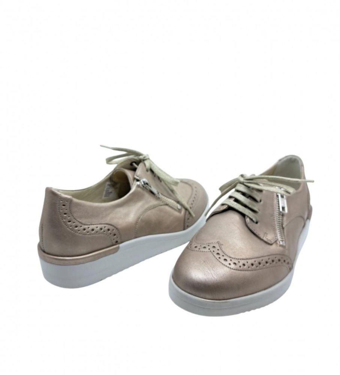 De Solidus 51002-40596 in champagne is een elegante dames veterschoen die comfort en verfijning perfect combineert. De zachte metallic tint geeft deze schoen een lichte, luxueuze uitstraling die elke outfit subtiel opfrist. Deze veterschoen is uitgevoerd in hoogwaardig, soepel leder dat zich mooi rond de voet vormt. Typisch voor Solidus biedt dit model extra ruimte en ondersteuning, ideaal voor vrouwen die graag comfortabel lopen zonder in te boeten op een verzorgde look. Dankzij het uitneembare voetbed is de schoen perfect geschikt voor eigen steunzolen. De lichte, stabiele zool zorgt voor een aangenaam en zeker loopgevoel, ook tijdens lange dagen. Of je hem nu draagt naar het werk, tijdens een uitstap of gewoon elke dag: deze veterschoen past zich moeiteloos aan jouw tempo aan. Comfort met een stijlvolle glans — letterlijk. Kenmerken: – Damesmodel – Hoogwaardig leder – Elegante champagnekleur – Vetersluiting – Uitneembaar voetbed (geschikt voor steunzolen) – Comfortabele, stabiele zool – Normale tot comfortabele pasvorm – Ideaal voor dagelijks gebruik