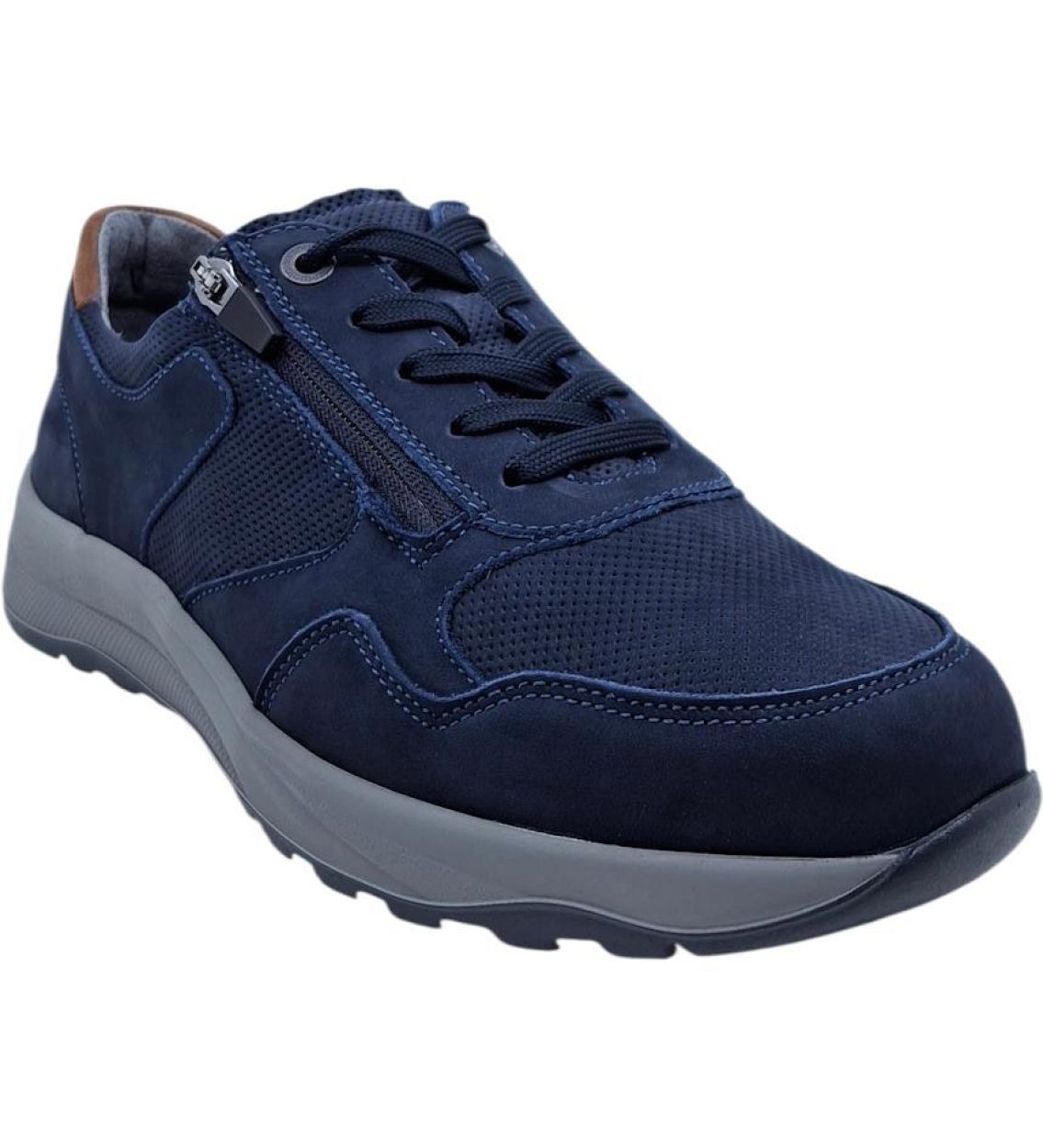 De Waldläufer John K in marine en cognac is een comfortabele en stijlvolle herenveterschoen, ideaal voor dagelijks gebruik en langere wandelingen. De combinatie van donkerblauw en warm cognacbruin zorgt voor een verzorgde, moderne uitstraling die makkelijk te combineren is met zowel casual als gekledere outfits. Het hoogwaardige lederen bovenwerk voelt soepel aan en vormt zich mooi naar de voet. Dankzij de vetersluiting kan de schoen perfect aangepast worden voor een optimale pasvorm en goede ondersteuning. Het uitneembare voetbed maakt dit model geschikt voor eigen steunzolen. In combinatie met de lichte en stabiele zool biedt deze schoen uitstekend loopcomfort, ook bij intensief gebruik. Een ideale keuze voor mannen die comfort, kwaliteit en een nette look willen combineren. Hoogwaardig lederen bovenwerk Vetersluiting voor optimale pasvorm Uitneembaar voetbed Geschikt voor steunzolen Lichte en stabiele zool Goede ondersteuning Comfortabele pasvorm (K-leest) Kleur: Marine / Cognac Model: John K Artikelnummer: 662001414416